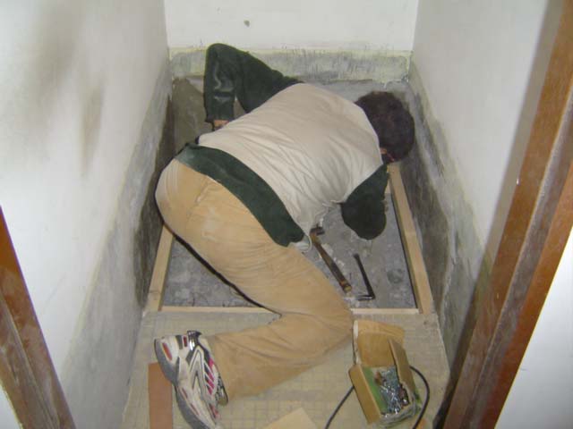 再び居室に戻り、旧押入内にきれいなベニヤを上貼りしています。